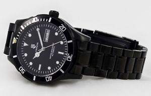 【送料無料】automatik herrenuhr massiv edelstahl schwarz plattiert neue serie tagdatum