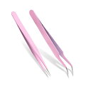 ピンセット 精密 キャップ付き ステンレス 先曲がり ストレート 細かい毛髪やまつげ つけまつ毛 クラフトに最適 (2種類セット ピンク) 送料無料