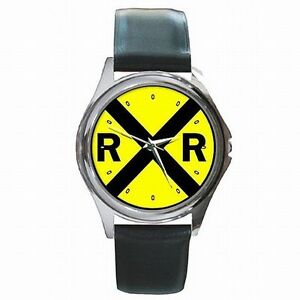 【送料無料】腕時計 モデルコレクタファンレザーrailroad crossing sign rr model train collector fan leather watch