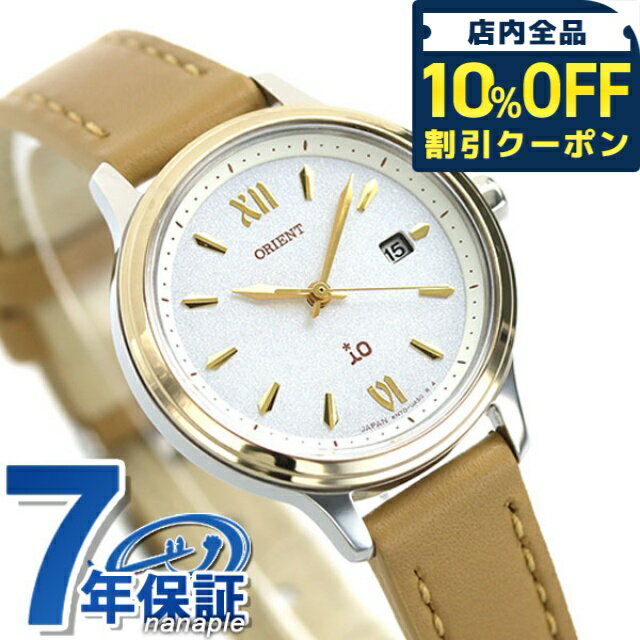 正規品 7年保証キャンペーン 送料無料 オリエント イオ チュラル&プレーン キャラメルマキアート 日本製 クオーツ レディース 腕時計 RN-WG0420S ORIENT iO NATURAL&PLAIN アナログ ホワイト×キャメル 革ベルト ◆キャラメルマキアートをテーマにデザインされた大人のカラーモデルが登場。ベルトやケースはコーデに合わせやすいカラーを採用し、文字盤には甘いトッピングシュガーをイメージした模様をあしらい煌めきをプラス。文字盤のインデックスにはクラシカルなローマインデックスとバーインデックスを組み合わせることで、かわいらしさを見やすさを両立するデザインに仕上げました。幅広いシーンやファッションに合わせやすい柔らかなカラーリングが特徴で、きちんとした日にもおしゃれをしたい日にも一緒に出かけられるアイテムです。太陽や蛍光灯などの光で発電するライトチャージ搭載。 発売日:21年9月発売メーカー希望小売価格はメーカーサイトに基づいて掲載していますオリエント イオ チュラル&プレーン 腕時計 キャラメルマキアート 日本製 クオーツ レディース RN-WG0420S ORIENT ホワイト×キャメル品番RN-WG0420S駆動方式ソーラー(KN700)素材:ケースステンレススチール素材:ベルトカーフレザー風防サファイアガラス文字盤カラーホワイトベルトカラーキャメルサイズ(縦×横×厚)約33.5×28×7mmかん幅約12mm美錠幅約10mmベルト腕周り約12.5-17cm重さ約20g仕様日常生活用防水(5気圧)平均月差±15秒日付表示日本製付属品保証書・専用ボックス※環境負荷低減の取り組みの一環として、取扱説明書はデジタル化となりました。詳細は付属のシートをご確認ください。保証メーカーにて一年保証