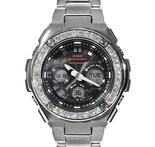 使いやすいミドルサイズ(ケースサイズ45mm)のカスタムモデルが入荷しました。 数あるGショックラインナップの中でも高級モデルとなる「G-Steel GSTモデル」のカスタムモデル G-SHOCKの機能はそのままにお手元をラグジュアリーに演出してくれます。 ベゼルのストーンはジュエリー職人が1粒1粒ハンドメイドによる爪留めセッティングが施されております。 このモデルをカスタムできるのは当店だけ!クオリティに自信をもってお届けします!! □こんな方にオススメ ・普段は高級ブランド時計をしているけど5万円ほどで買えるラグジュアリー時計がほしい ・クラブやイベントで目立ちたい ・インスタ映えするジュエリー時計がほしい ・他人とはかぶらないカスタム時計がほしい 大切な人へのプレゼント、ギフト、お祝いにも喜ばれます♪♪ □商品詳細 カスタムモデル:G-Steel GST w310 ケースサイズ:45mm(リューズ含まず) ベゼル素材:Stainless Steel ストーン:CZダイヤ(キュービックジルコニア) セッティング:ハンドメイドによる爪留め ベルト素材:ステンレススチール 商品の状態:未使用品※ ※G-SHOCK時計本体は正規店より新品にて購入し当店にてカスタムしております。 そのため【未使用品】【中古品】と表記しております。 未使用品のため使用感等はございませんのでご安心してご注文いただけます。 メーカー保証:カスタム製品のためメーカー保証対象外となりますが、電池が切れた際の電池交換は当店にて承ります 付属品:取扱説明書、CASIO純正ボックス <ストーン保証について> 当店ではご購入から6か月以内に通常使用によるストーン欠けにつきましては無償にて修理させていただきます。発送時にお付けする「お買上げ明細書」が保証書となりますので大切に保管ください。※ただしお客様の過失による損傷、ストーン欠けにつきましては保証対象外となります。 <主な機能> タフソーラー 文字板と液晶部を照らすスーパーイルミネーター ネオブライト 無機ガラス 耐衝撃構造(ショックレジスト) 20気圧防水 ★動画にて実際の商品をご覧いただけます。 スマホでご覧になる場合、稀に表示されないことがあります。表示されない場合は再度アクセス頂くかPC版にてご覧ください <<代引き注文のお客様への注意事項>> お客様が商品到着時にお支払い頂く前提で商品を発送しておりますが、昨今受け取り拒否をされる方が増えております。当店の商品は希少在庫アイテムが多いため、受け取り拒否をされると数週間在庫が保留され他のお客様にもご迷惑がかかります。店舗側も大きな負担となります。 受け取り拒否をされたお客様(長期不在による未払い含む)につきましては当店が負担した送料および手数料を請求させていただきます。応じない場合は法的処置を取らさせていただく場合がございます。 お客様とスムーズなお取引をしたいためご理解の程、宜しくお願い致します。G-SHOCK Gスチール GST w310 大粒CZダイヤ(キュービックジルコニア)ミドルサイズ G-Steel メタルバンド Kronic クロニック 時計 プレゼント メンズ ギフト お祝い 誕生日【未使用品】【中古】【保証付き】※動画あり