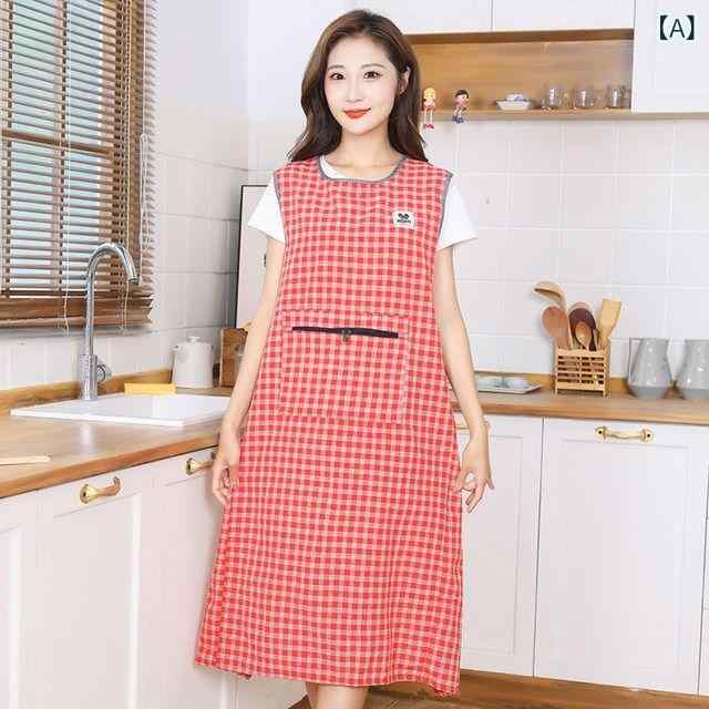 ロング 丈の 膝上 通気性 綿 ノースリーブ エプロン ホーム 大人用 オーバーオール キッチン 防 汚 女性用 作業服 カジュアル素材: 綿サイズ: フリーサイズ
