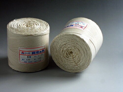 安心して使える国産の純綿製調理糸!ご家庭からプロ用まで用途に応じて選べます。【規格】6号【重量】約360g【太さ×長さ】約1.0mm×550m 豊富なサイズバリエーション! 国産品です♪