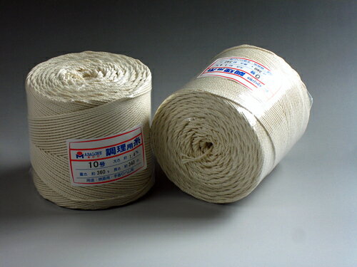 安心して使える国産の純綿製調理糸!ご家庭からプロ用まで用途に応じて選べます。【規格】10号【重量】約360g【太さ×長さ】約1.4mm×340m 豊富なサイズバリエーション! 国産品です♪