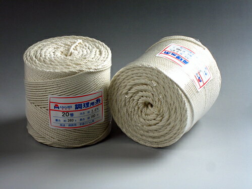 安心して使える国産の純綿製調理糸!ご家庭からプロ用まで用途に応じて選べます。【規格】20号【重量】約360g【太さ×長さ】約2.0mm×160m 豊富なサイズバリエーション! 国産品です♪