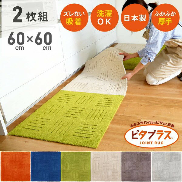 【ブラックフライデー960円クーポン配布中★】【お得な2枚組】ピタプラス キッチンマット 45×60cm 2枚組 ( ジョイントマット キッチンマット 180cm 240cm おしゃれ 吸着 すべり止め 洗える ふかふか 犬 猫 無地 リビング 玄関 廊下敷き カーペット オカ株式会社 )