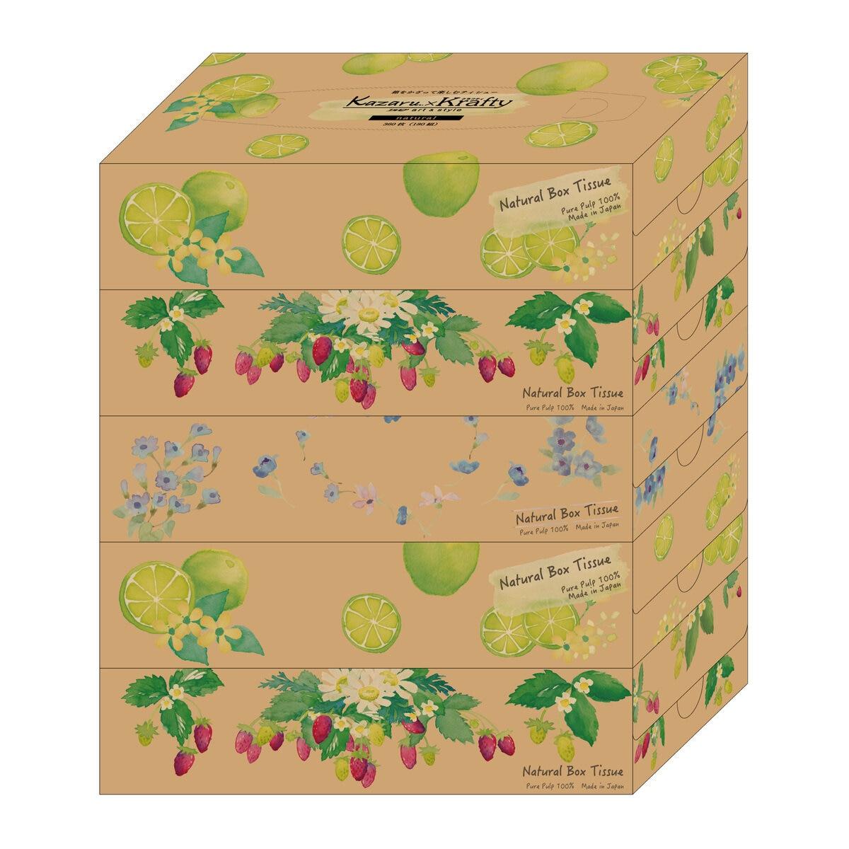 【限定販売!】エルモア ティッシュ Kazaru x Krafty ナチュラル 5箱 x 12パック ct74089