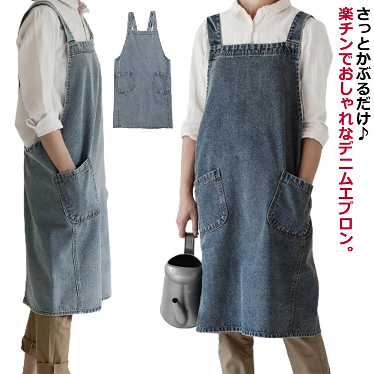 デニムエプロン おしゃれ 男女兼用 保育士 北欧 カフェ 綿 バッククロス 多機能ポケット オーバーオール風 送料無料 デニム エプロン ワークエプロン 作業エプロン かぶるだけ 脱着簡単 店員 飲食店 ガーデン