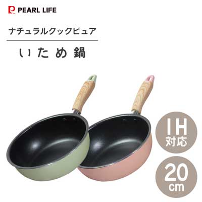 いため鍋 20cm IH対応 ふっ素加工 ナチュラルクックピュア パール金属 / フライパン 炒め鍋 ディープパン アルミ製 ガス火対応 ピンク グリーン かわいい おしゃれ 可愛い お洒落 新生活 /