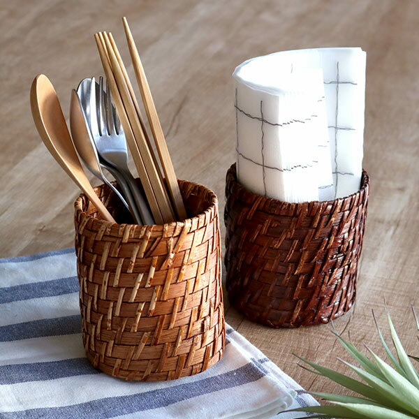 カトラリー 収納 ラタン 竹 天然素材 カトラリースタンド ( カトラリーケース カトラリー収納 箸 スプーン フォーク ケース 化粧品 卓上 整理 キッチン雑貨 キッチン収納トレー キッチン収納トレイ キッチン小物 小物入れ )【3980円以上送料無料】