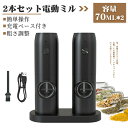 電動ミル 2本セット ソルト ペッパー スパイスミル ペッパーミル ペッパーグラインダーミル コンパクト コードレス USB充電式 粗さ調整 塩挽き コショウ 胡椒 粗びき 香辛料 岩塩 結晶塩 セラミック 片手 挽ける キッチン 業務用 家庭用