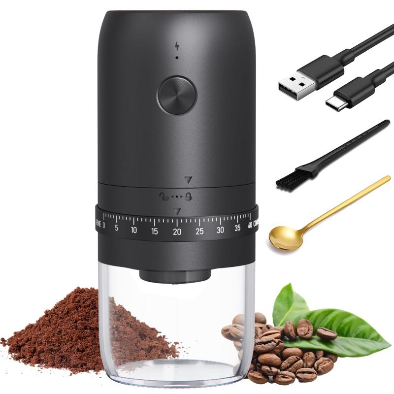 電動コーヒーグラインダー、 充電式コーヒー豆グラインダー、ポータブル小型コーヒーグラインダー、調整可能な粗さ 1800 自動コーヒー豆の屋外と屋内のために簡単操作ワンボタンでコーヒーグラインダーがスタートし、コーヒー豆を効率よく挽き、挽いた後は自動でシャットダウンします。過負荷保護装置と自動停止機能を搭載しています。安全に使用することができます。マルチ研削レベルを搭載 お好みに合わせて挽き具合を調整できます。内蔵のセラミックグラインダーで、簡単に豆を挽くことができます。コーヒー豆の状態やお好みの抽出方法に合わせて、極細挽きから粗挽きまで無段階に調整できます。朝でも短時間で挽きたてのコーヒーが楽しめます。ユニークなセラミック芯&ウォッシャブルを採用。セラミックグラインダー芯は硬くて錆びにくいセラミック素材を採用し、粉砕時に熱が発生しないので、コーヒー豆の酸化や香りの低下を抑えます。コーヒーグラインダー電動は、本体部分、豆入れ部分、粉入れ部分、グラインダー芯部分をそれぞれ交換することで、簡単に分離することができます。コーヒーグラインダー電動は、本体部分は乾いた布で拭く程度で、その他の部分は水で洗うことができます。大容量バッテリーType-c充電式電動コーヒーグラインダー、1800mAH大容量バッテリー、1回に約25~30gのコーヒー豆を挽き、1杯で約150~200mlのコーヒーを楽しむことができます。フル充電すると、次回は最大16回まで挽くことができます。また、フル充電には約2.5時間かかるだけです。多用途手のひらサイズでコンパクトに設計され、場所をとらない小型コーヒーグラインダーです。本体は軽量で、持ち運びも簡単です。コーヒー豆を挽くだけでなく、あらゆる種類のスパイスに適しており、青大豆、黄大豆、ピーナッツ、ゴマ、米、コショウなど、さまざまな食材を挽くことができます。