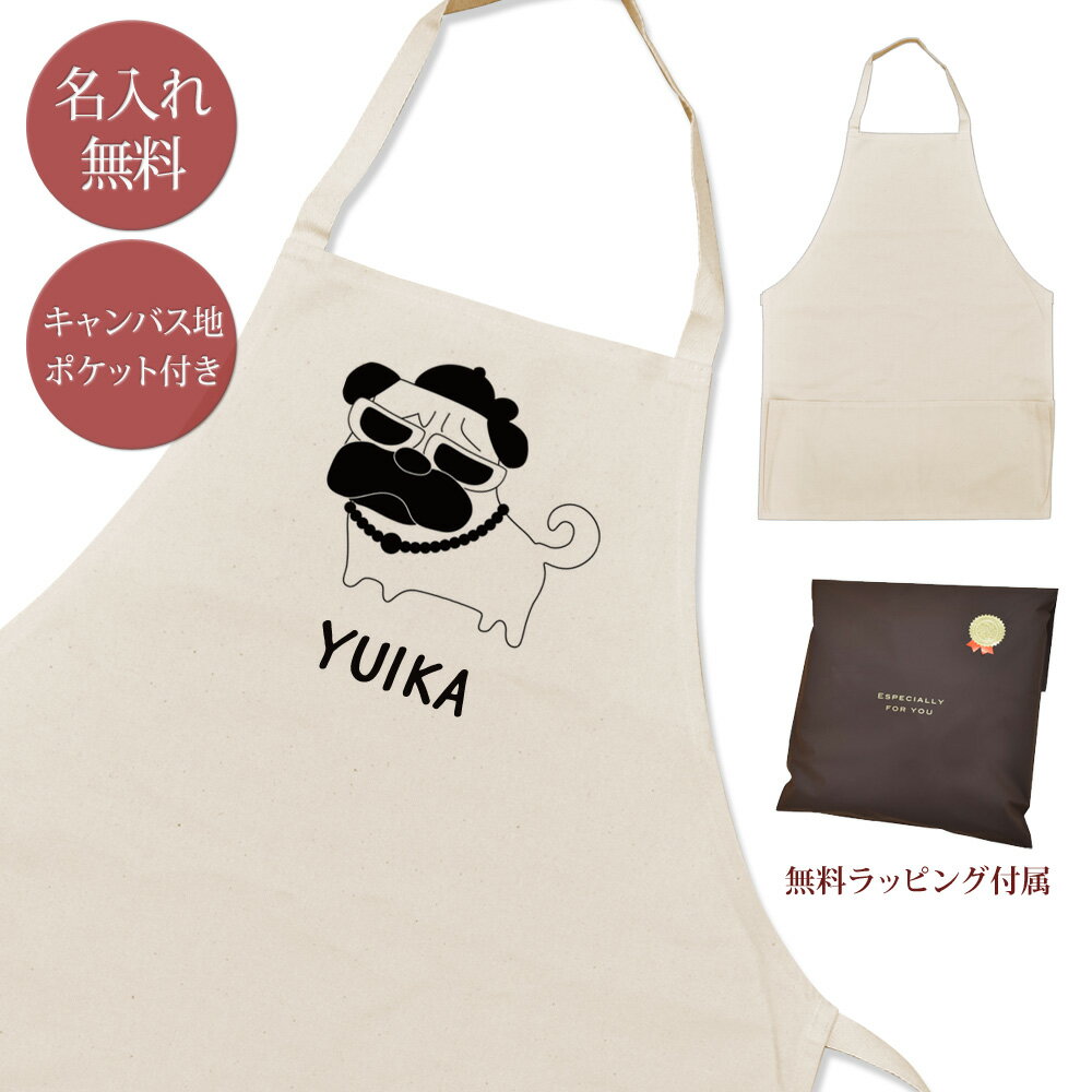 【名入れ無料】 エプロン 首掛け ポケット付き 着せ替えパグ ボス サングラス 犬 動物 グッズ おもしろ 面白 ギフト プレゼント メンズ レディース ナチュラル キャンバス地 ブランド ラッピング ココロコ 母の日 父の日