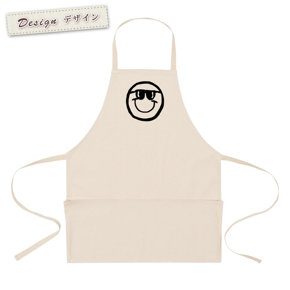 【即納 名入れ無し】 エプロン 首掛け ポケット付き ニコちゃんマーク サングラス グラサン スマイリー 絵文字 変顔 表情 グッズ おもしろ 面白 ギフト プレゼント メンズ レディース ナチュラル キャンバス地 ブランド ココロコ