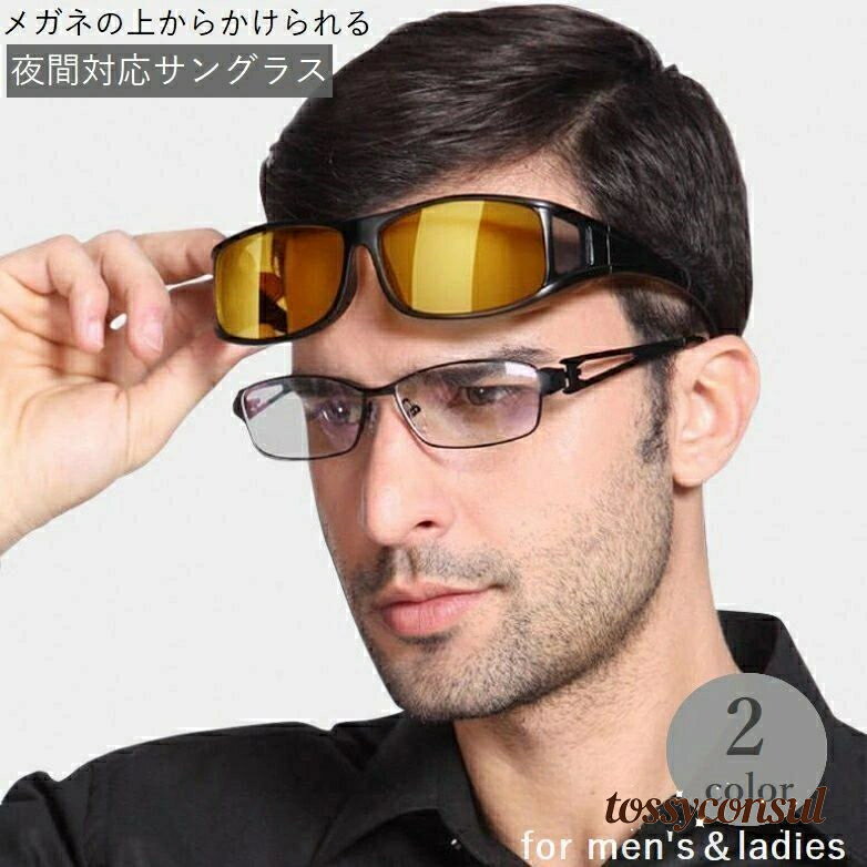 サングラス オーバーグラス ドライビンググラス メンズ レディース 運転中 ドライブ 夜間 雨天 眼鏡の上 メガネの上 黒縁 カラーレンズ かっこいい おしゃれ グレー イエロー 黄色