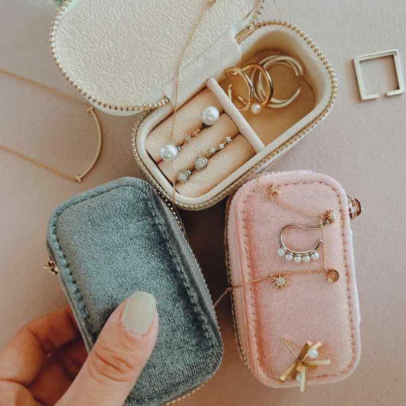demi lous.ジュエリーケース ポータブル 持ち運べる アクセサリー収納 小さい 持ち運び 旅行用 小物入れ ミニサイズ アクセサリーケース ファスナー付 ミニポーチ ポータブル軽量でありながら耐久性に優れたソフトベルベット素材を採用。内部にはジュエリーを個別に収納できる仕切りを設け、ファスナーも付き、紛失や絡まりを防ぎます。ジム、ヨガ、出張、旅行先で大切なアクセサリを楽に保管。ミニサイズ:縦4.8cm、横8.5cm、高さ4cmどんなバッグにもスッキリ収まる。素材: ソフトなベルベット素材を使用し、手触りが良く、アクセサリーを優しく保護。使いやすい: 高品質のジッパーで簡単に開閉でき、アクセサリーの出し入れがスムーズ。内部構造: リングやイヤリングを整然と収納できる専用スペースを備え、アクセサリーケース同士が絡まないように設計。カラー: パステルピンク、クリーム色、グレーの3色展開で、どんなスタイルにもマッチ。多用途に対応: 旅行、ビジネス出張、ジム、プール、ヨガなど、さまざまなシーンで活躍。安心の収納: 耐久性と柔軟性を兼ね備えた素材で、アクセサリーを衝撃から守ります。深さのある自由スピースにアクセサリーの種類を幅広く対応可能。