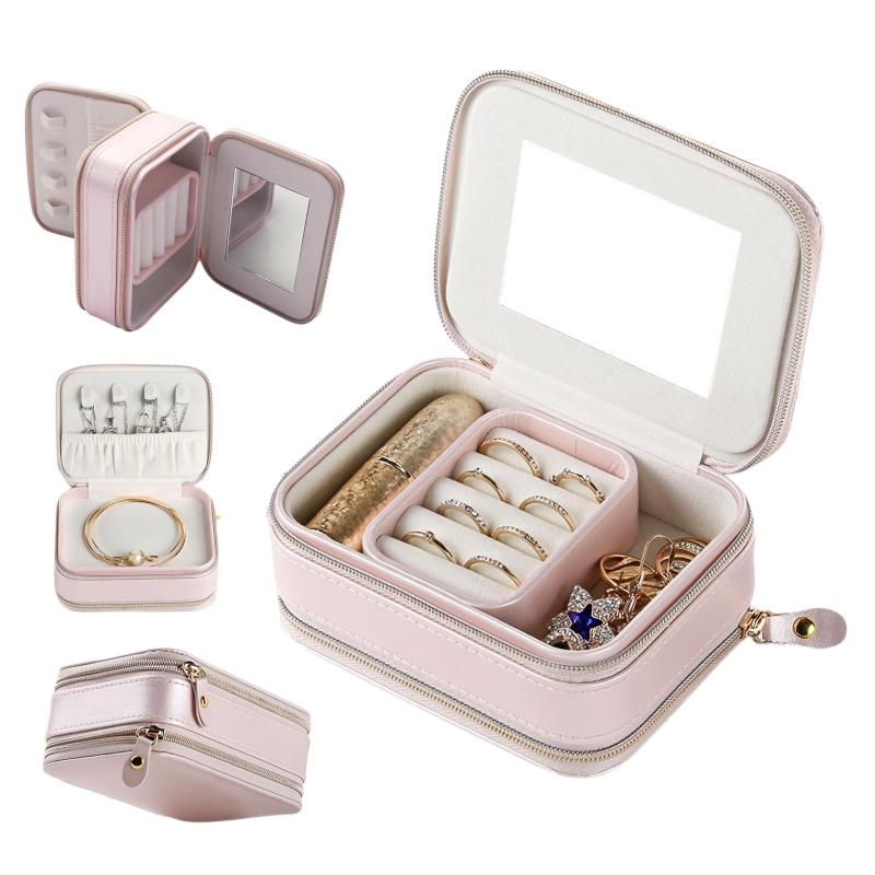 ジュエリーケース アクセサリー 収納 ミニ宝石箱 持ち運び 旅行用 ジュエリーケース 鏡付き アクセサリーケース 指輪 ネックレス ピアスケース 持ち運び (ピンク)