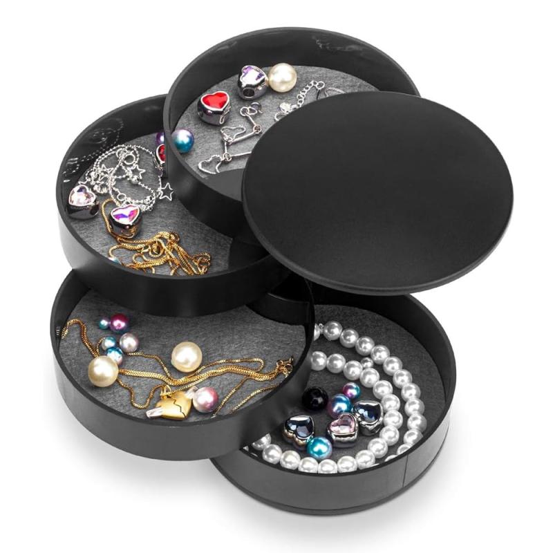 アクセサリーケース ジュエリーケースボックス ピアスケース ネックレス 収納 アクセサリー収納 仕分けて収納でき タワー 蓋付き 丸型 回転式 蓋付き (ブラック)