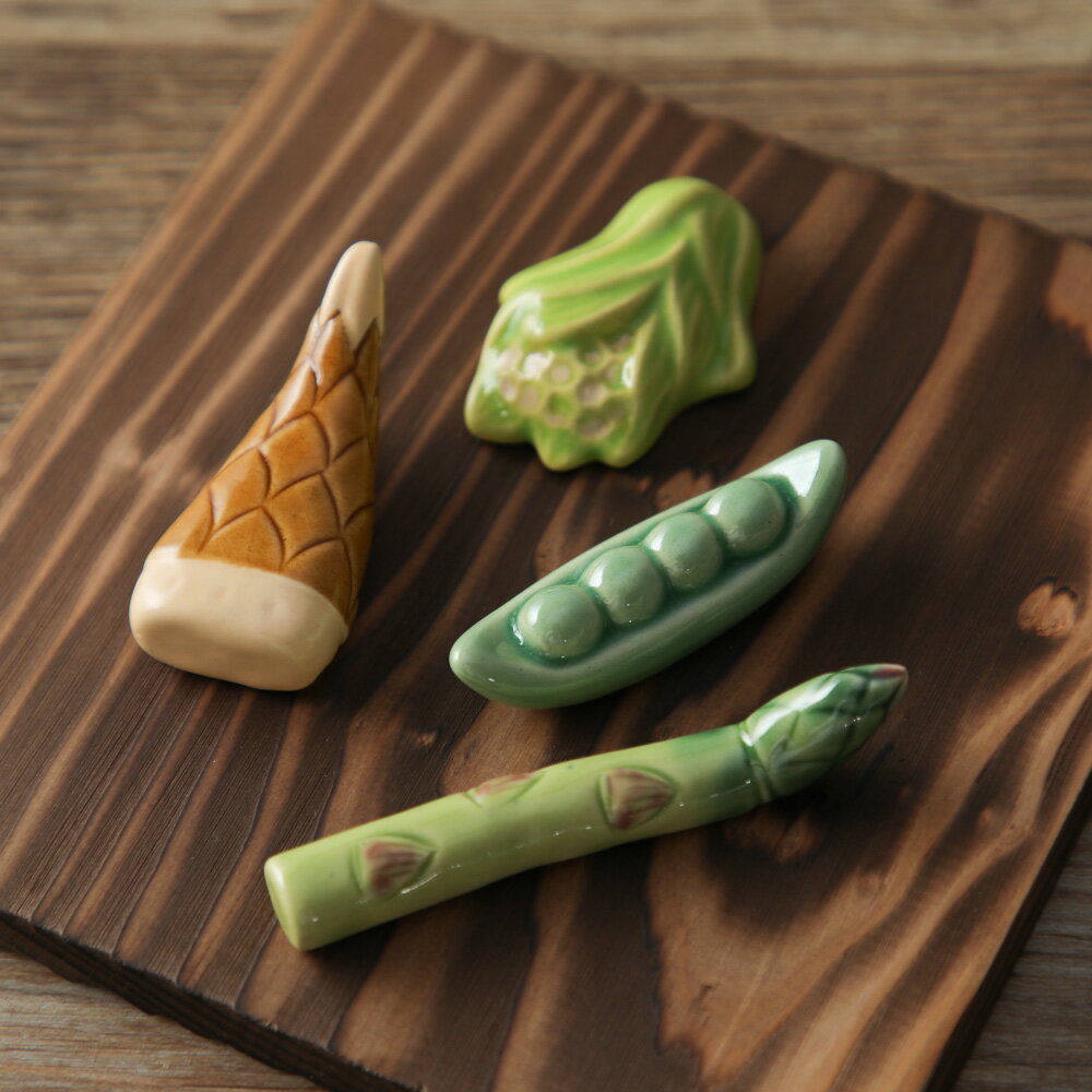 春の野菜 箸置きセット タケノコ ふきのとう スナップエンドウ アスパラガス イホシロ窯【メール便 選択可】