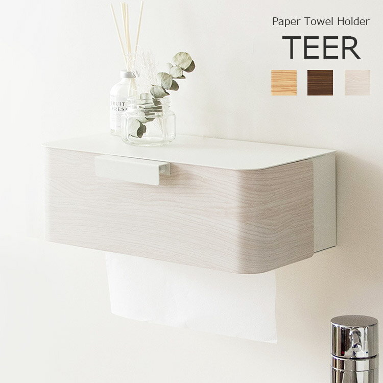 TEER ペーパータオルホルダー【ペーパーホルダー キッチンペーパーホルダー ティール 壁掛け 木目調 キッチン収納 洗面台 ティッシュケース おしゃれ TH-1600M】