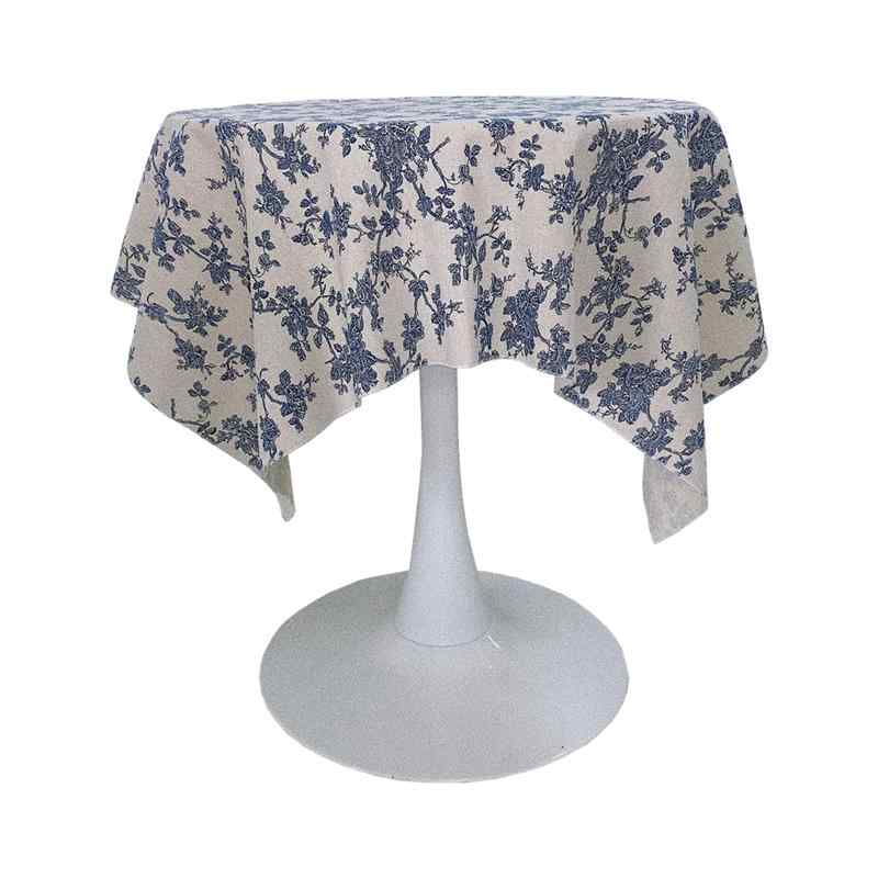 テーブルクロス おしゃれ レトロ ブルー バラ 花柄 コットンリネン カバー布 ダイニング ピクニックシート 写真 背景 スクエア タッセル レース ロック加工 上品