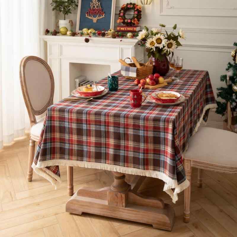テーブルクロス アメリカン レトロ 格子柄 シンプル 高級感 ダイニング コーヒーテーブル ピクニックシート 滑り止め 耐摩耗性 クリスマス ポリエステル 綿混