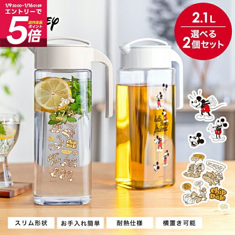 冷水筒 耐熱 ピッチャー 横置き 2リットル 2L 洗いやすい プラスチック おしゃれ 麦茶ポット 水差し 新生活 ミッキー チップとデール チップ&デール お得【 ディズニー Disney アスベル ドリンク ビオ ASVEL VIO D211 2本セット 】