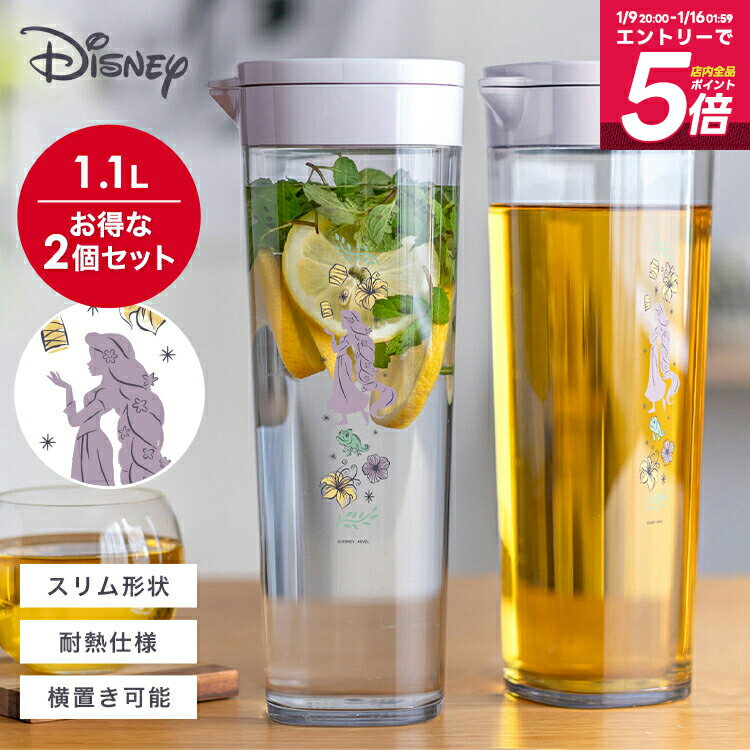 冷水筒 耐熱 ピッチャー 横置き 1リットル 1L 洗いやすい プラスチック おしゃれ 麦茶ポット 水差し 新生活 プリンセス 【 ディズニー Disney ラプンツェル アスベル ドリンク ビオ ASVEL VIO D112 2本セット 】