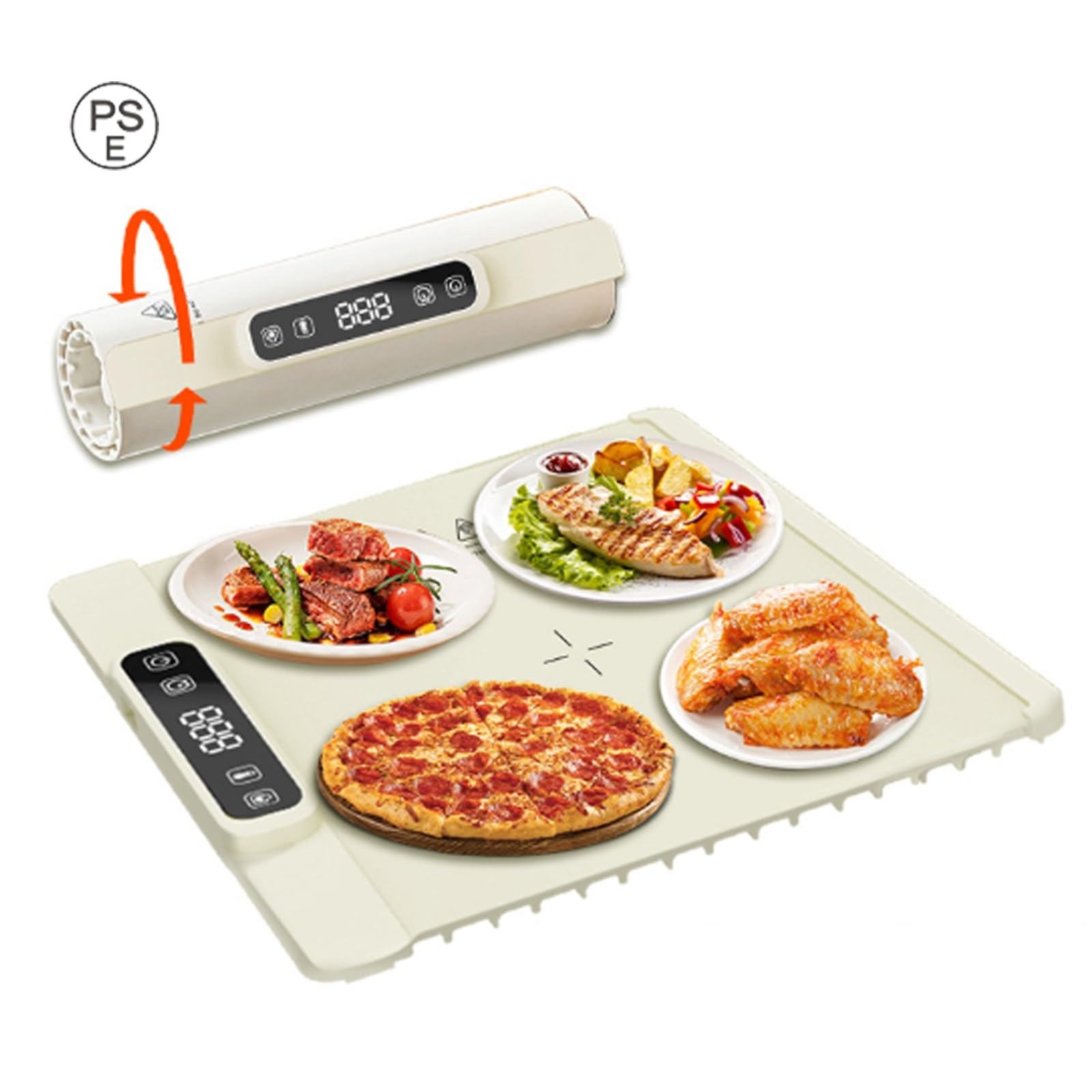 食品保温トレイ 45*38cm 加熱プレート 温度調節60-100°C 電気保温トレイ 折りたたみ可能 シリコーン素材 卓上保温プレート 簡単にお手入れ可能 多機能食品断熱ボード レストラン パーティー イベント 家族ディナーそして毎日の使用 食品断熱ボード 冬場冷食対策(ベージュ)