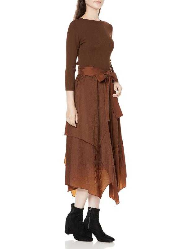 [グレースコンチネンタル] 2022AW バックパールニットワンピース レディース着丈ニット54cm スカート86cmウエスト90/64 ハイゲージニット。 タフタ素材のイレギュラーヘムスカートとニットトップスのセットアップ。