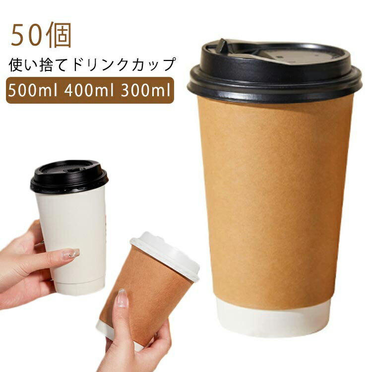 蓋付き 紙コップ 50個 二重クラフト断熱 500ml 400ml 300ml 紙カップ テイクアウト 保温 保冷 断熱 使い捨て 容器 業務用 エコ容器 デザート コーヒー ラテ ラテアート ドリンクカフェ プラカップ 紙カップ 美容室 ネイル エステ サロン カフェ おしゃれ