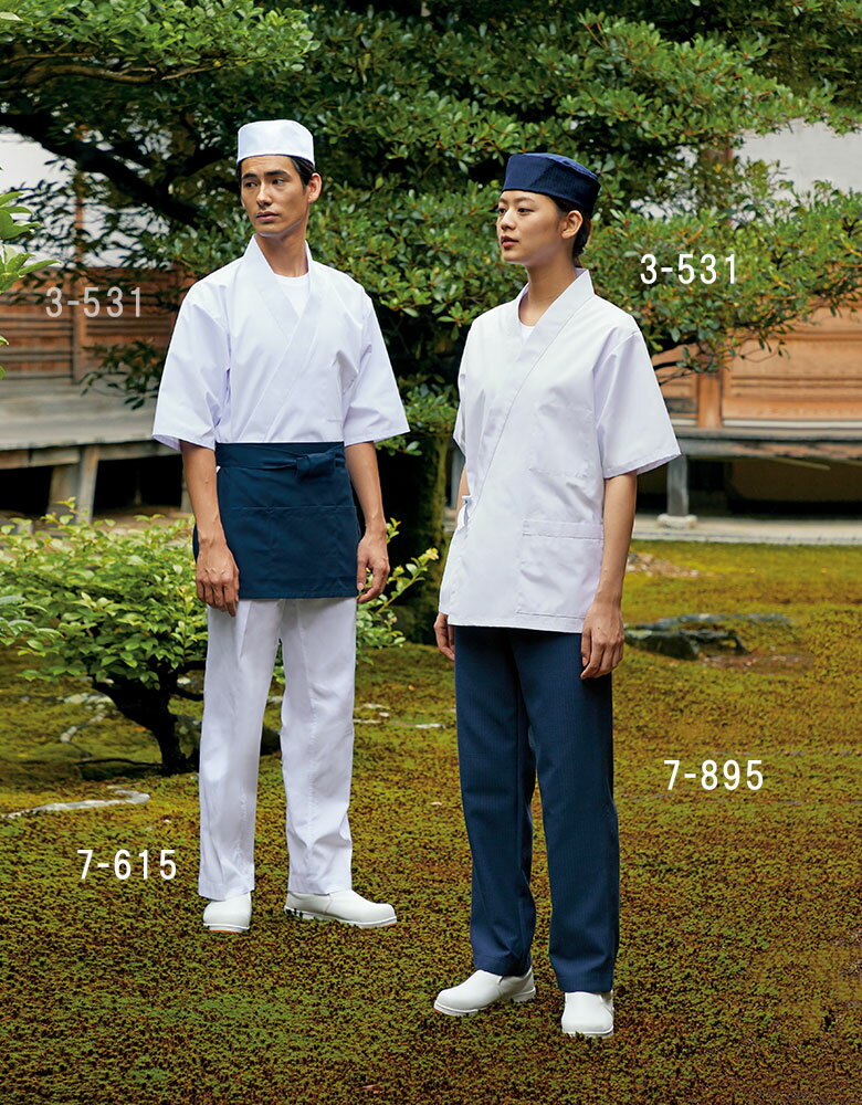 同一シリーズ1-571 調理コート 長袖1-601 調理衣 長袖1-602 調理衣 半袖1-603 調理衣 長袖1-607 調理衣 7分袖1-611 調理衣 長袖1-612 調理衣 半袖1-613 調理衣 長袖1-615 調理衣 7分袖1-617 調理衣 7分袖1-851 調理コート 7分袖2-661 調理コート 袖ネット付 7分袖|商品名|はっぴ 7分袖|メーカー|住商モンブラン|品番|3-531|カラー|白|サイズ|S、M、L、LL|素材|タッサーポリエステル65%・綿35%|機能|抗菌(O-157対応)|ブランド|和&ORIENTAL|仕様|内ポケット:内側に、四角のポケットが付いています。|サイズ区分|男女兼用|年間区分|通年|シリーズ|白の衣|ここでよく使われます|飲食店 レストラン キッチン 居酒屋 寿司屋 そば屋 うどん屋 ラーメン屋 和食 中華料理 日本料理 割烹 料亭 懐石 小料理屋 旅館 ホテル 和菓子屋 厨房 料理人 板前 職人 食品工場 給食センター|おすすめ業種|和食・割烹|メインカテゴリ|飲食店ユニフォーム>厨房服・調理服>調理白衣>七分袖|配送方法|通常:宅配便(メール便不可商品)◆送料込みの表示がある商品でも、北海道・沖縄県は別途送料2,835円を頂戴します。当店及びメーカーで欠品の場合でもご購入でいる場合がございます。欠品時の納期はメールでご連絡します。注文確認メールが届かない場合はお電話にてお知らせ致しますので届かない旨を必ずご一報下さい。◆全ての商品に返品交換の可否を記載しております。交換時に発生する諸費用はお客様のご負担となります。詳しくはご利用ガイドをご覧ください。 → ご利用ガイドへ一点の曇りもない、粋すらも感じさせる鮮やかな白。おもてなしの心を宿した日本の美を身にまとう。引き締まった表情で威勢の良さもアピールできる、はっぴスタイル。【arbe】期間限定お買い得エプロンはコチラ!シンプルな無地で使いやすい、コスパで選ぶエプロン!太めの肩紐で疲労軽減腰紐で調整できるから首に負担を掛けないで調整可能!サッとかぶれて厚手のジャケットの上からでも簡単着用住商モンブランは、フード産業向け白衣ユニフォーム分野で国内トップクラスのメーカーです。和風・洋風・食品工場と、商品展開が幅広く、お店の雰囲気に合わせてユニフォームに採用しやすい信頼できるメーカーです。おしゃれなデザインのアイテムも多く、おしゃれが好きな方にもおすすめです。ブランシェシリーズはファッションのリーディング企業「ワールドグループ」とのコラボレーション。ユニフォームの常識をくつがえすデザインを取り入れた、美しく魅せる仕事服です。オニベジシリーズは野菜や植物から生まれた自然素材で染め上げた、やさしい印象のユニフォーム。食品工場向け白衣は、食の安全と、着る人の快適を追求した食品工場のためのユニフォーム。HACCP対応の衛生機能と動きに寄り添うパターン設計で、安心・安全・快適を実現します。ご確認事項こちらの商品は交換可能・返品不可となります。※交換には別途手数料がかかります。詳しくはこちらこの商品はお取り寄せになりますこちらの商品は、ご注文確認後メーカーより取り寄せとなります。他のサイトでも同時販売しておりますので、在庫更新のタイミングにより商品をご用意できない場合がございます。メーカー在庫が欠品の場合もございますので予めご了承ください。別途、メールにてご案内させていただきます。シーズン品につきましては、在庫変動が激しいため欠品の可能性がございます。お急ぎの場合は、お手数ですがご購入前に在庫のご確認をお願いいたします。
