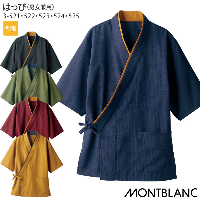 はっぴ(7分袖)3-521-522-523-524-525 S~3L 男女兼用 ユニセックス 住商モンブラン MONTBLANC 5色展開