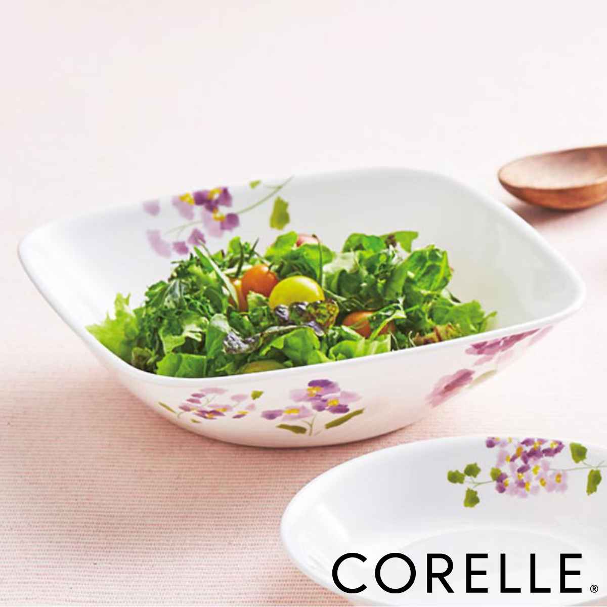 ボウル 22.5cm スクエア コレール CORELLE バイオレットミスト ( 食洗機対応 電子レンジ対応 オーブン対応 耐熱 サラダボウル 中鉢 白 盛鉢 花柄 四角 軽い 割れにくい 白い食器 角皿 パスタ カレー 煮込み料理 おしゃれ )【3980円以上送料無料】