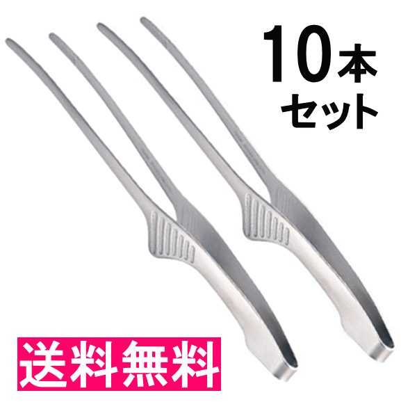 10本セットで販売 ・先端が箸のように細くなっていて、滑り止め加工が施されているため、細かい作業や盛りつけ、飾りつけを行う際にも便利に使えるトングです。・先端部が薄い為、ハムなど重なっている食材も簡単に取りはがしできます。 ・どの角度に置いても先端部がテーブルに触れず、衛生的です。 <商品仕様> ■サイズ:(約)全長240mm ■重 さ:(約)60g ■材 質:本体/18-0ステンレス、オールサテン仕上げ■生産国:日本(燕三条製) ●他のトングはこちらからどうぞ 【YDKG-kj】