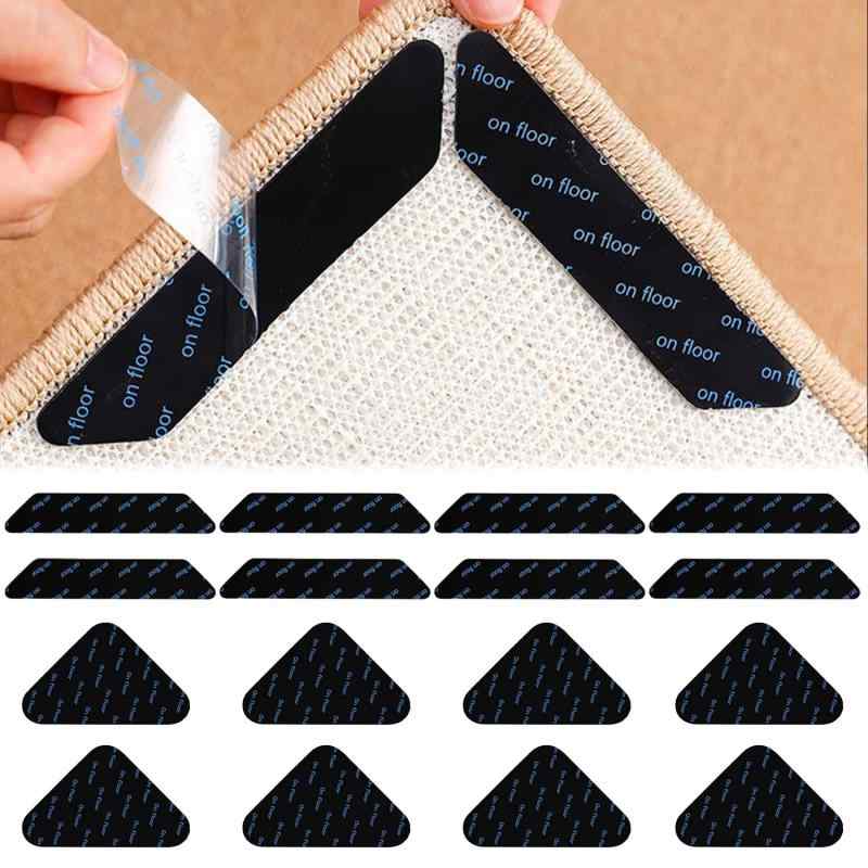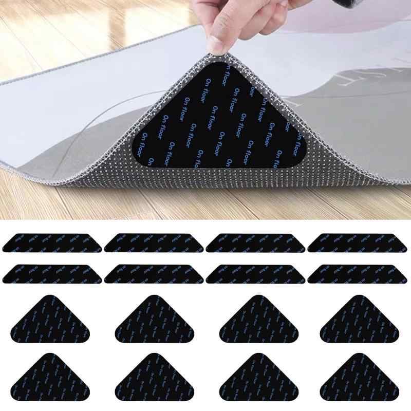 滑り止めシート 16枚 超強力 滑り止めマット 【ネット加固・跡残らない・水で洗うと粘性が回復】カーペットパッド滑り止めテープ カーペット、マット、ラグ、ソファなど様々なものに適しています(三角形90*90mm×8+台形30*180mm×8)。