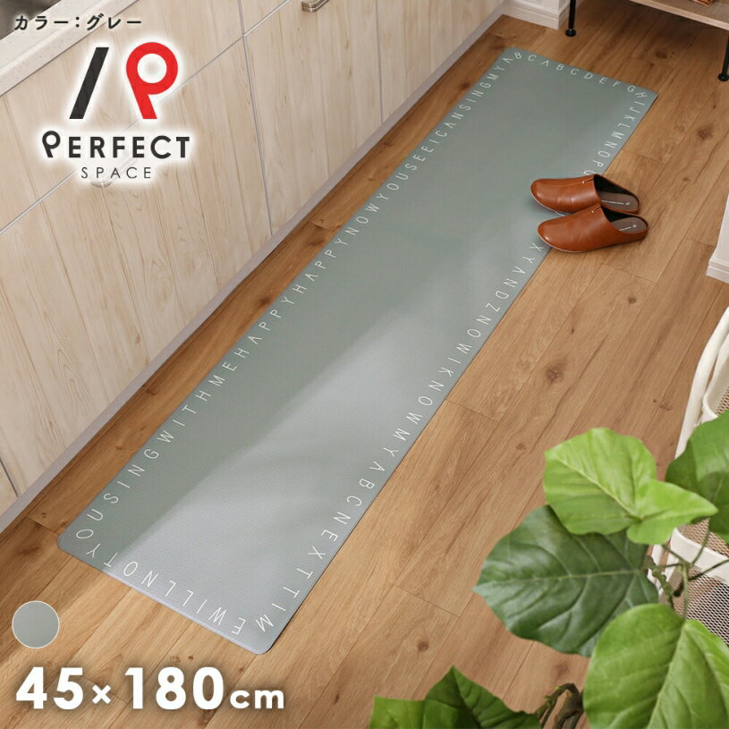 キッチンマット マット 塩化ビニル樹脂 撥水 薄型 英字 ローマ字 ナチュラル グレー 北欧 滑り止め 洗濯可 洗える かわいい お洒落 お手入れ簡単 45cm×120cm