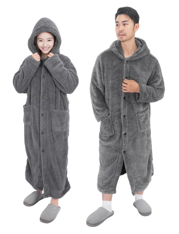 [Yoimira] 着る毛布 男女兼用 大きいサイズ 暖かい ふわふわ 着るブランケット フード付き ルームウェア メンズ 着る 毛布 レディース 部屋着 ボタン付 秋冬 洗える 乾きやすいデザイン:男女兼用着る毛布で、両面が暖かいもこもこガウンで作られており、保温性が高く、透湿性も優れています。また、裾のデザインにより風の侵入を防ぎます。長めの毛足が柔らかくふわふわな肌触りで、快適な着用体験を提供します。両サイドにポケット付きで、小物を収納したり手を温めたりでき、大変重宝します使用シーン:この着る毛布はあったか素材でできており、レディースにもメンズにも適しています。冬のルームウェアやガウン、パジャマをお探しの方に最適です。家で映画を見たり、家族と一緒に食事をしたりする時にぴったり。寒い冬に最適な選択肢です暖かい:このパジャマは柔らかく繊細な素材を使用し、肌触りが優しく、1枚で充分に暖かい秋冬の着る毛布です。軽量でありながら保温性が抜群で、動きやすさも兼ね備えています。フード付きのデザインは、頭部から体全体を包み込むように設計されており、冷たい空気を遮断します。着用した瞬間に感じる心地よい温かさがカップルの着こなし:冬の朝、メンズ・レディース着る毛布パジャマでぬくぬく過ごしませんか?このもこもこガウンを着て料理や映画を楽しんだり、こたつでコーヒーを飲んだり、二人で暖かなひとときを。おそろいのガウンで家中どこでも一緒にぽかぽか親切なヒント:ゆったりとしたカットとラウンドネックでシンプルなデザインのレディース・メンズ着る毛布は、着脱も簡単です。あなたの衣類を守るために、中性洗剤を使用することをお勧めし、鋭利な物から遠ざけてください