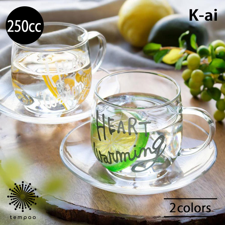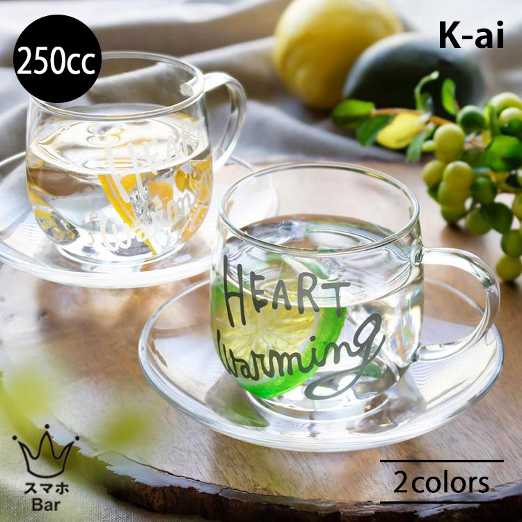 K-ai HEART Warming カップ&ソーサー 250cc 耐熱ガラス コーヒー 紅茶 シンプル クリア 手書き文字 可愛い お洒落 ブルックリンスタイル インダストリアル ハートウォーミング ケーアイ 雑貨 プレゼント ギフト