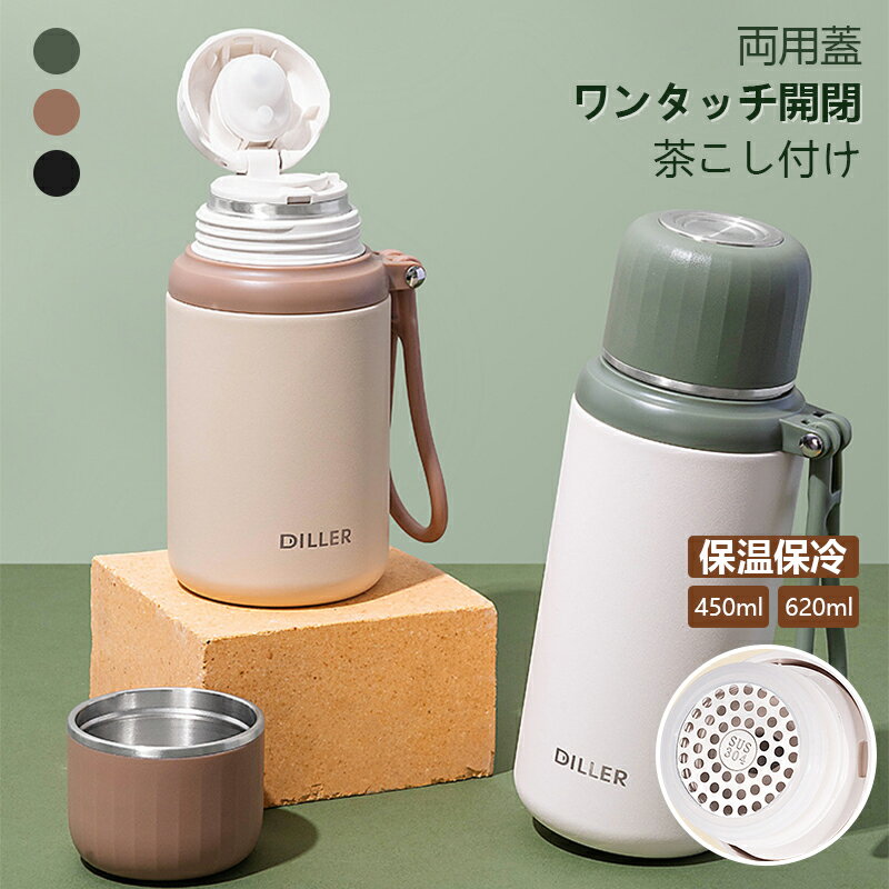 【1点5%~2点12%OFF】フィルター付き 水筒 ワンタッチ 保冷 保温 両用蓋 コップ付き ワンプッシュ 真空断熱 ボトルコンパクト 軽量 清潔 直飲み ステンレスボトル スリム サハラ ホワイト ブルーブラック スポーツドリンク スポドリ 運動会 タイガー