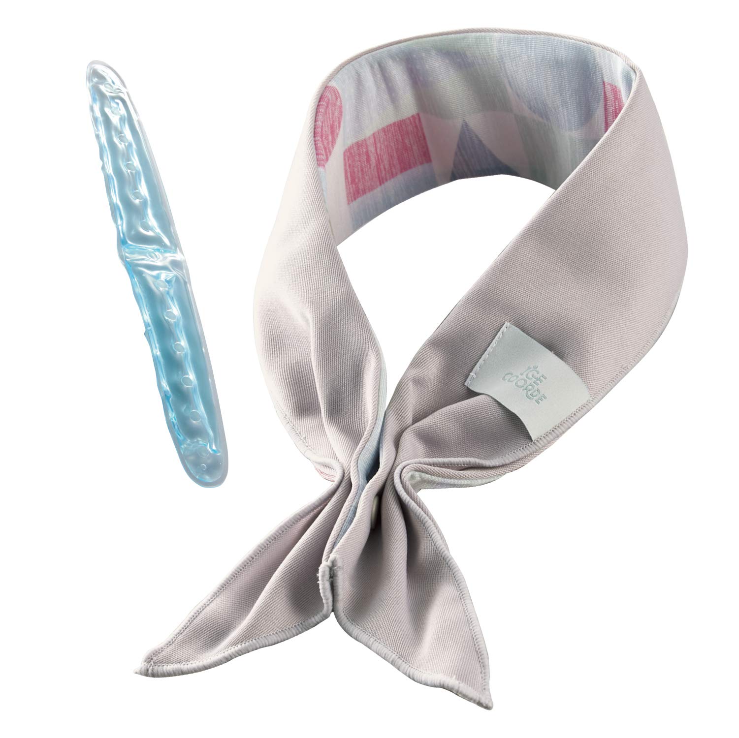 普段づかいからスポーツ観戦、アウトドアなどのお出かけ時に。 さまざまなシーンで手軽に暑さ対策が出来る“ice coorde(アイスコーデ) クールスカーフ"です。 冷感生地は熱伝導率が高く、触れた時により多くの熱が肌から生地に移るため冷たく感じられます。 また、冷感生地はやわらかく上質な質感で、心地よく暑さを対策できます。 UVカット率は90%以上で、紫外線対策にもお使いいただけます。 本体のポケットに付属のロングアイスジェルを入れて使うと、首まわりを広範囲に冷やせます。 付属品: 本体