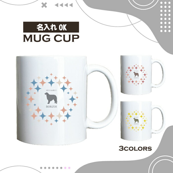 名入れ OK マグカップ キラキラ コーヒー カップ 選べる カラー 犬 ボルゾイ ぼるぞい イヌ いぬ ペット グッズ カフェ おしゃれ かわいい 陶器 男性 女性 共用 日本 デザイン ペア セット も おすすめ 350ml 以上 大きめ