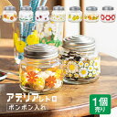 保存容器 キャニスター アデリア レトロ ボンボン入れ ミニ 375ml ガラス かわいい 保存瓶 昭和レトロ調 プリントグラス