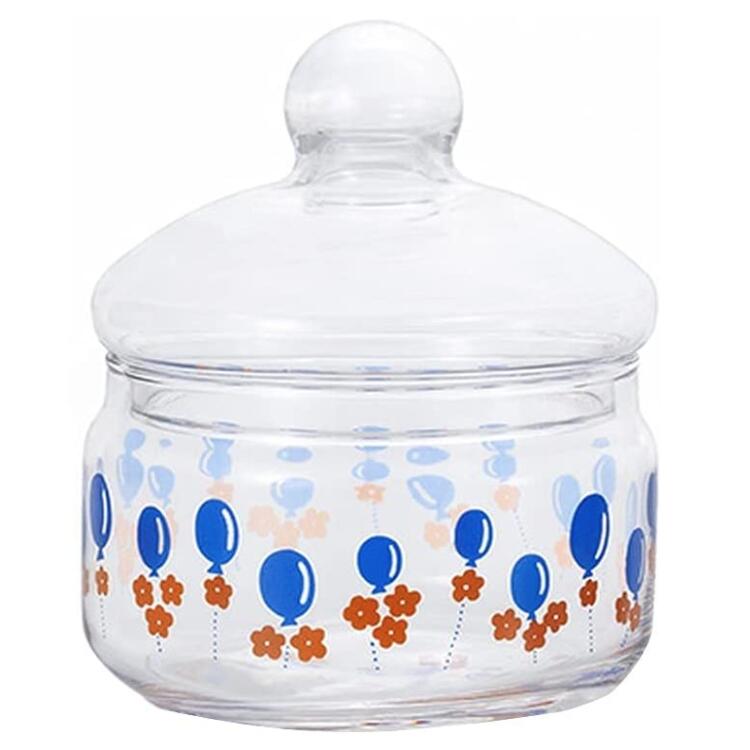 * 商品詳細情報 * サイズ: 口径65mm 高さ95mm 容量375ml 原産国: 日本製 セット内容: ボンボン入れ(ミニ) 1個 その他: 1個箱入 ※密封容器ではございません。 ボンボンとは、一口サイズのチョコレートやキャンディーのこと。昭和の家庭では、ガラスの卓上保存容器は「ボンボン入れ(ミニ)」と呼ばれ親しまれていました。お菓子や小物などの保存に。 ※家庭用食器洗浄機をご使用頂けますが、長年のご使用でプリント柄が薄くなったりする場合がございますのでご注意ください。 ※アデリアレトロの商品にはかすれやにじみが見られる場合がございます。 こちらは昭和当時の風合いを表現するために意図的に再現したものです。 不良品ではございませんのであらかじめご了承の上お買い求めくださいませ。