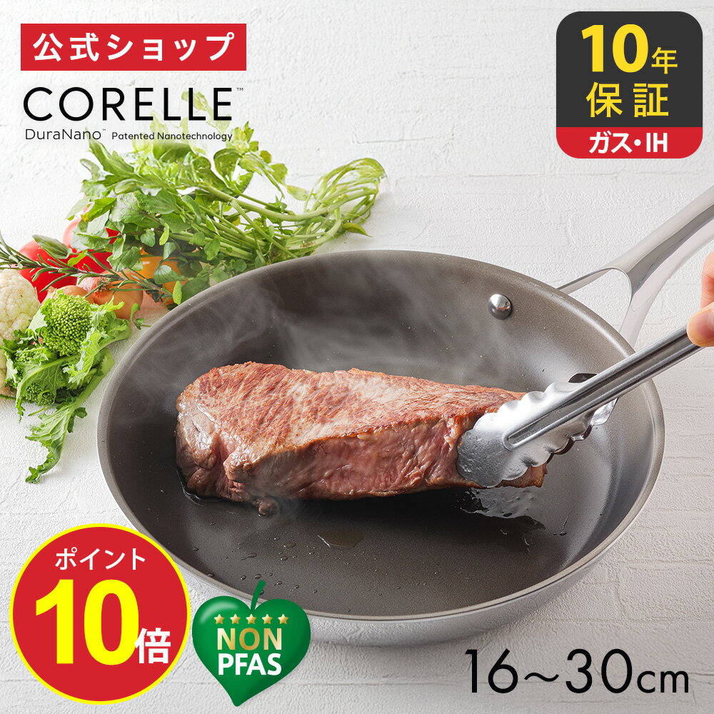\ポイント10倍/【公式通販】CORELLE ( コレール ) IH対応 フライパン 16cm 20cm 深型 24cm 26cm 28cm 30cm | 長持ち 長持ちする 焦げない 10年長期保証 IH対応 ガス火対応 オール熱源対応 深い オーブンOK 強火OK 金属ツールOK 食洗器OK 高温調理 黒 ブラック ドウシシャ