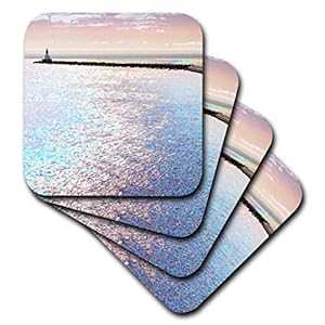 3dRose CST_19401_1 ミシガン州アッパー半島のスペリオル湖の水域に到達する防波堤 - ソフトコースター、4 個セット 3dRose CST_19401_1 Breakwall Reaching Into The Waters of Lake Superior in Michigans Upper Peninsula-Soft Coasters, Set of