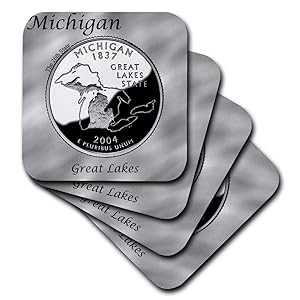3dローズ ステート クォーター ミシガン - ソフト コースター、8 個セット (CST_120140_2) 3dRose State Quarter Michigan - Soft Coasters, Set of 8 (CST_120140_2)