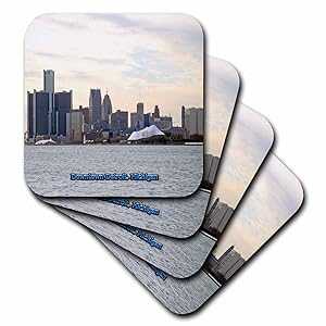 3dRose Downtown Detroit, Michigan - Soft Coasters, set of 8