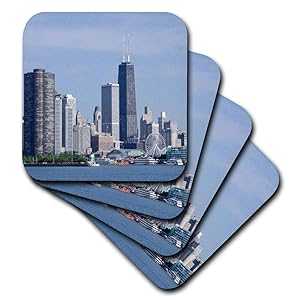 3dRose CST_208022_2 Illinois, Chicago, Lake Michigan View The Chicago City Skyline, Soft Coasters, (Set of 8)