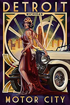 【中古】【輸入品・未使用】デトロイト、ミシガン州???Deco Woman and車 24 x 36 Giclee Print LANT-48143-24x36